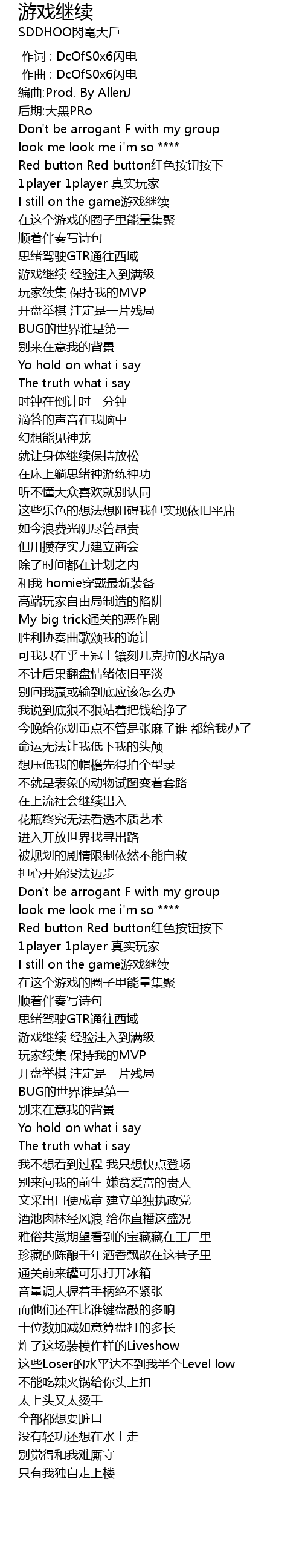 | [01:59.367] | I still on the game yóu xì jì xù |