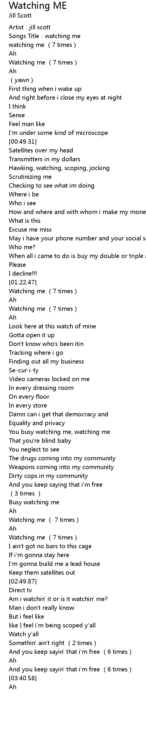 | [01:35.72] | Watching me (7 times) |