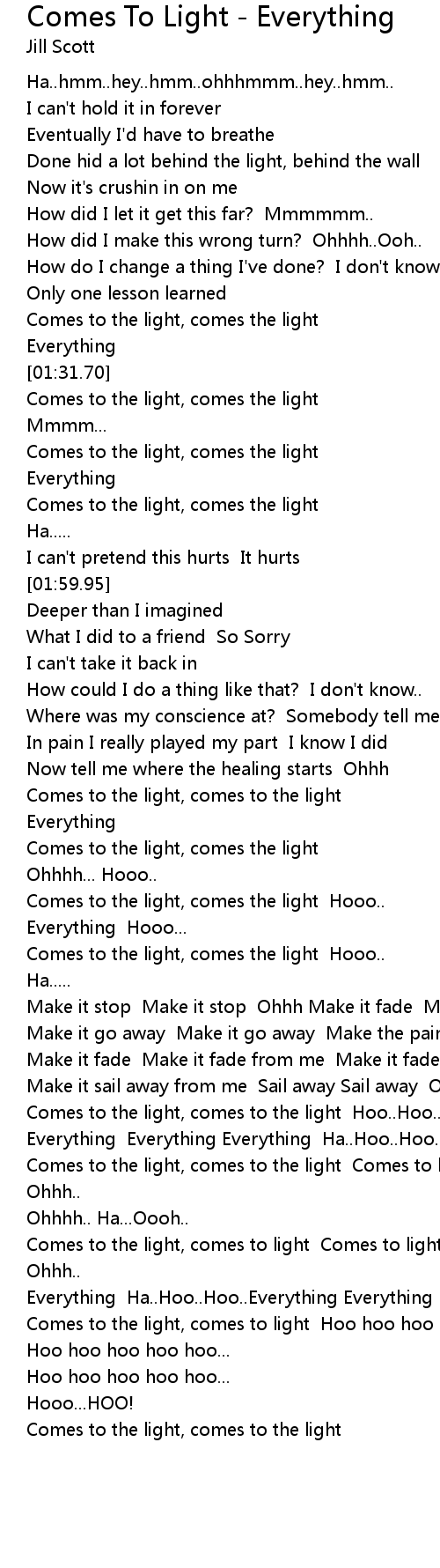 Comes to the light, comes to the light Comes to light Comes to light Ohhh.. |