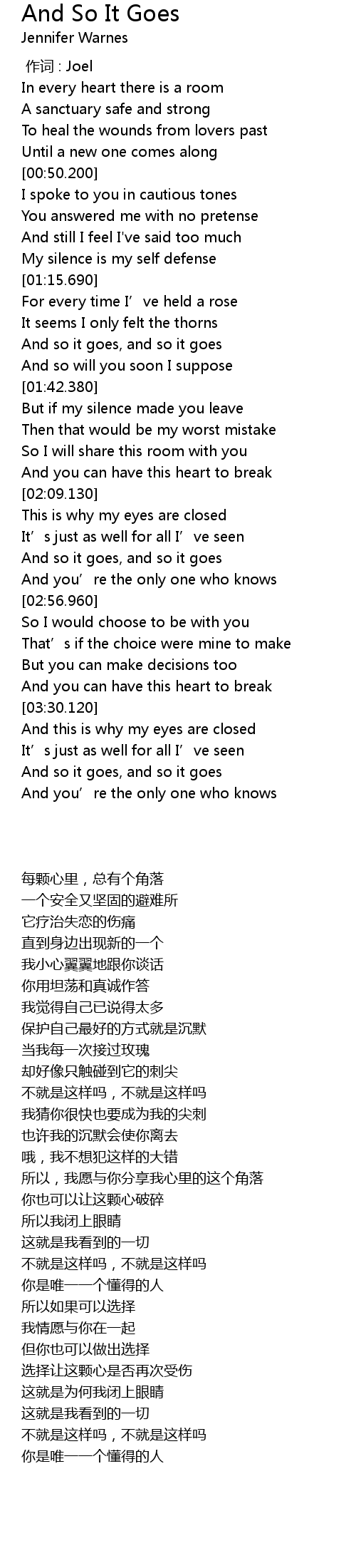 | Song | And So It Goes |
