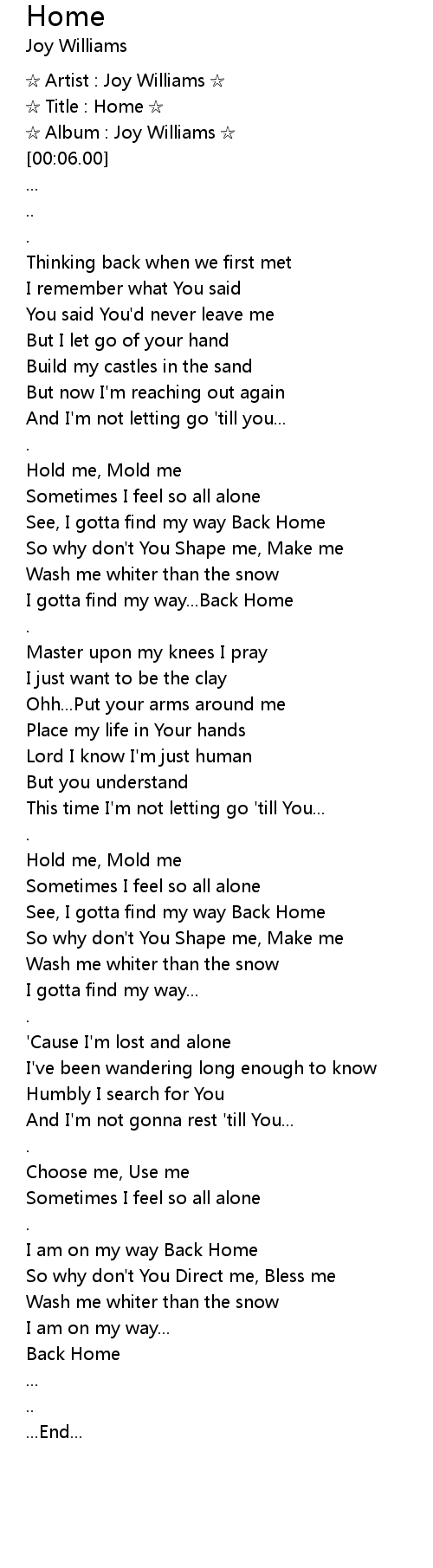 | [01:32.00] | I gotta find my way...Back Home |