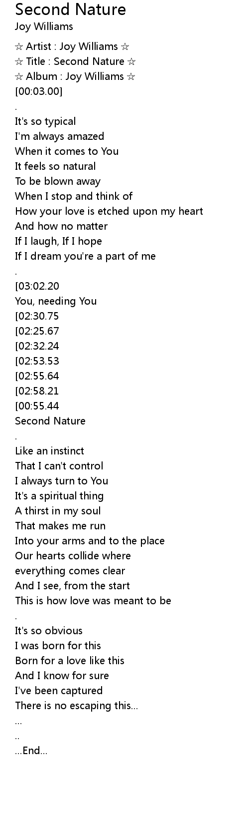 | [00:01.00] | Title : Second Nature |