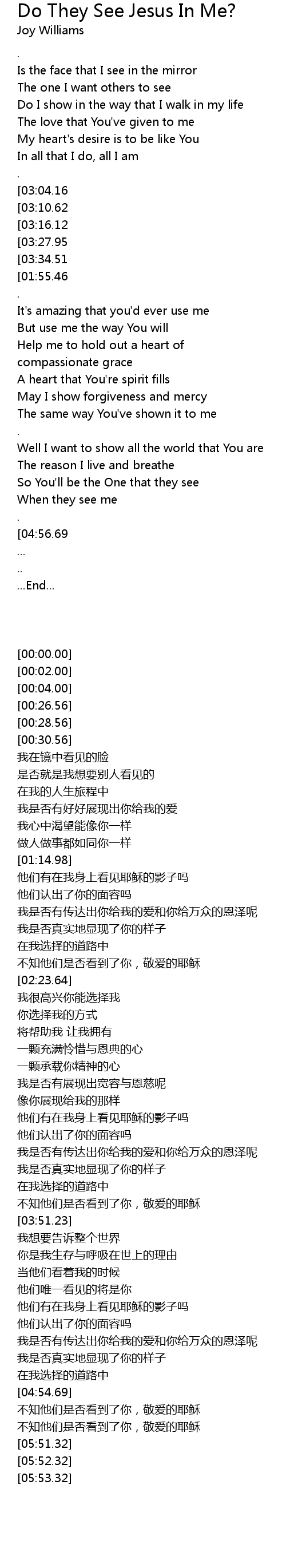 Ohh...Do they see Jesus In Me |