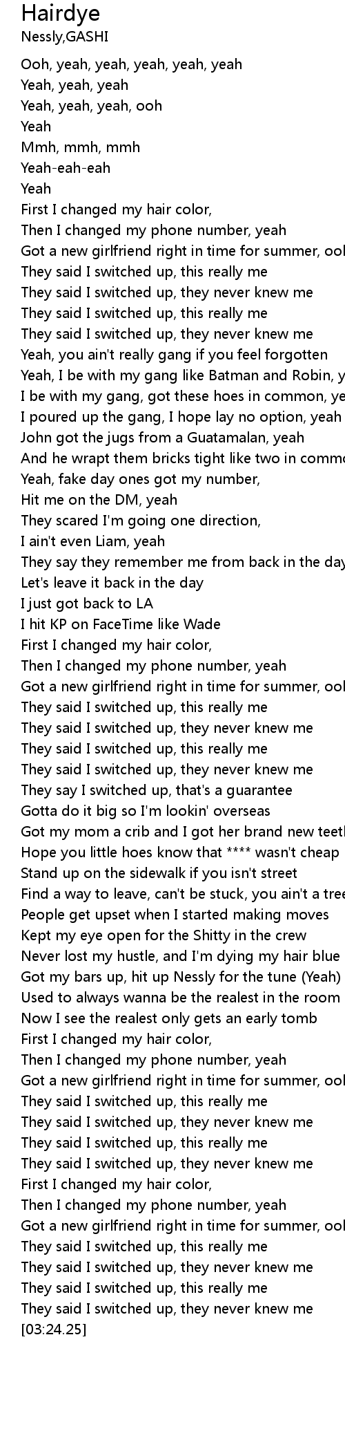 | [02:19.73] | Never lost my hustle, and I'm dying my hair blue (RIP) |
