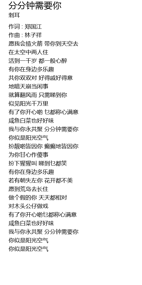 | wǒ yǔ nǐ yǒng gòng jù fēn fēn zhōng xū yào nǐ | |