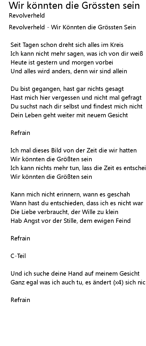 | Song | Wir könnten die Grössten sein |