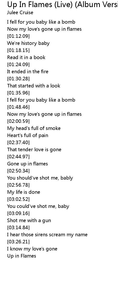 Now my love's gone up in flames |