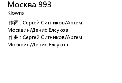 | [00:00.000] | 作曲 : Сергей Ситников/Артем Москвин/Денис Елсуков |
