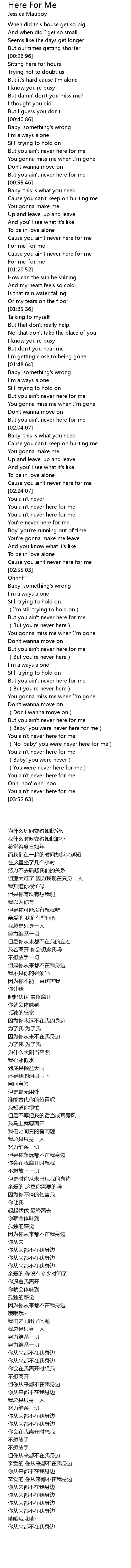 | [00:53.31] | But you ain' t never here for me |