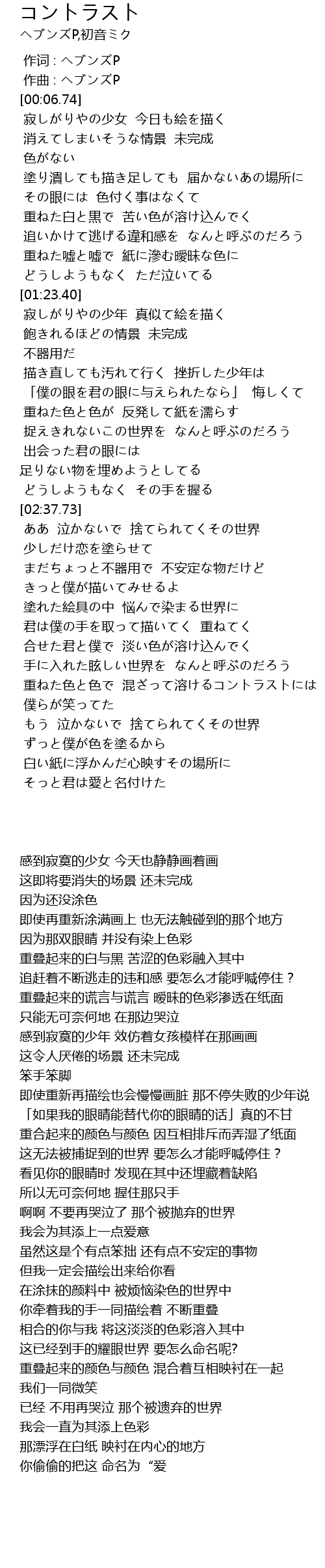 | [03:50.41] | 重ねた色と色で 混ざって溶けるコントラストには |