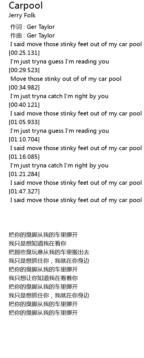 | [00:19.822] | I said move those stinky feet out of my car pool |