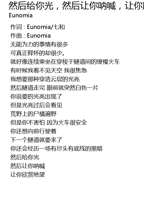 | [00:00.000] | 作词 : Eunomia/七和 |