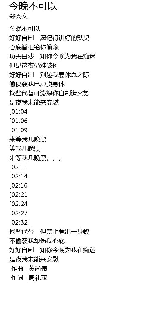 | [01:51] | 好好自制 知你今晚为我在痴迷 |