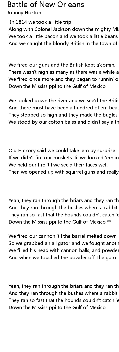 Along with Colonel Jackson down the mighty Mississip. |