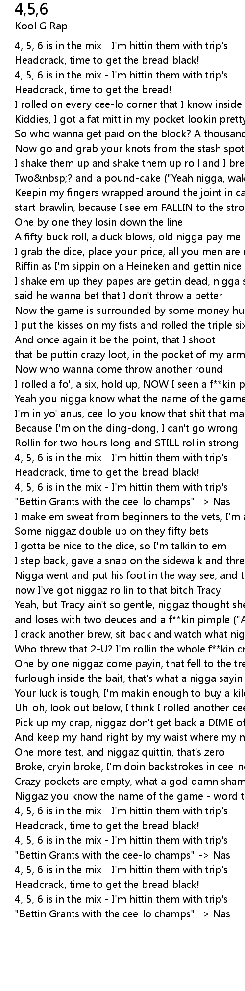 4, 5, 6 is in the mix - I'm hittin them with trip's |