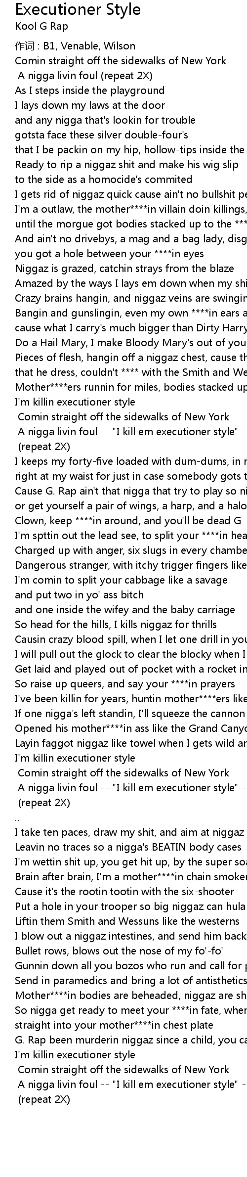 | A nigga livin foul -- "I kill em executioner style" -> G. Rap | |