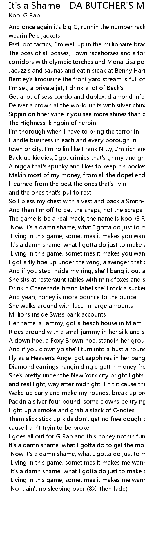 It's a damn shame, what I gotta do to get the money |