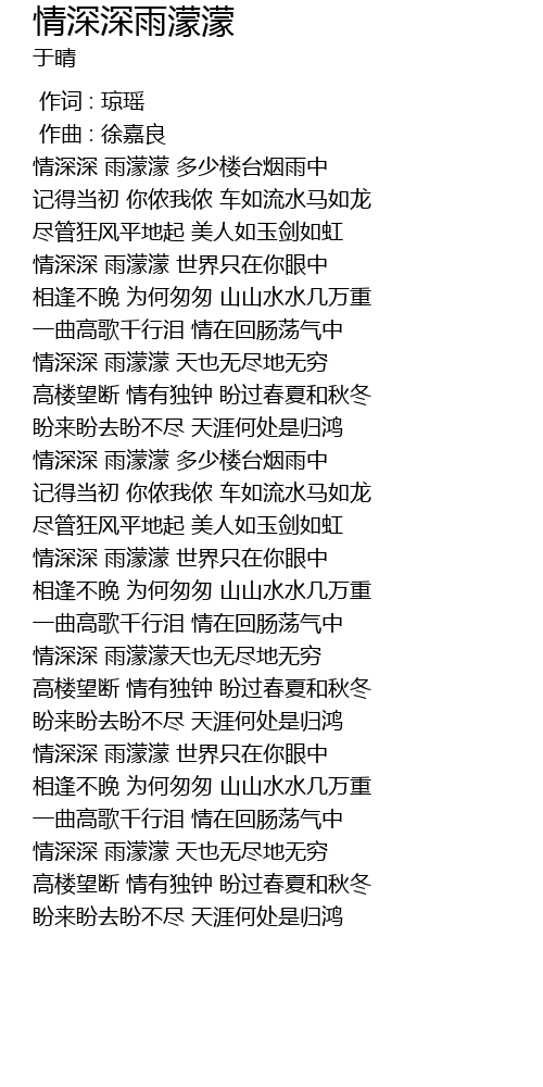 | [03:49.449] | 情深深 雨濛濛 天也无尽地无穷 |