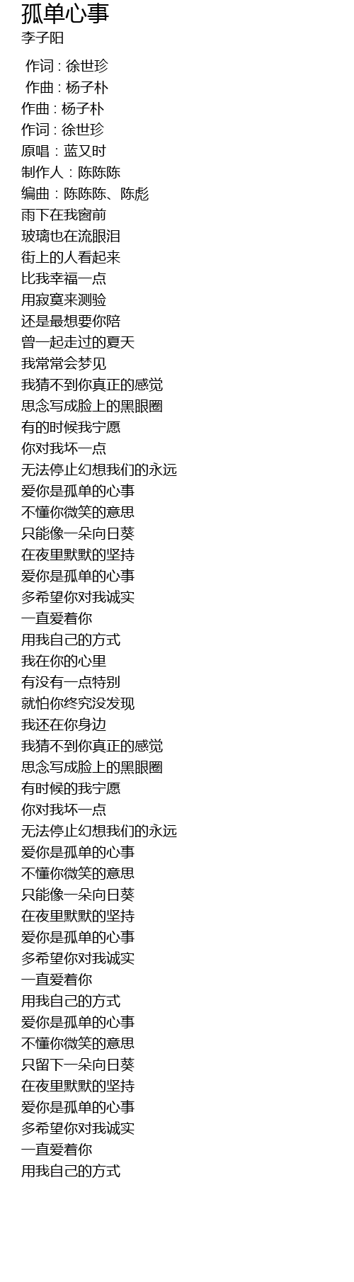 | [01:31.699] | ài nǐ shì gū dān de xīn shì |