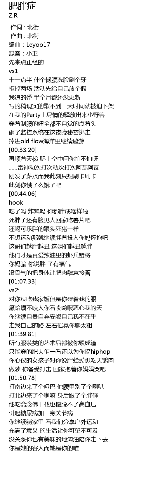 | [01:43.27] | zhǐ néng chuān de féi dà zhà yī kàn hái yǐ wéi nǐ gǎo hiphop |