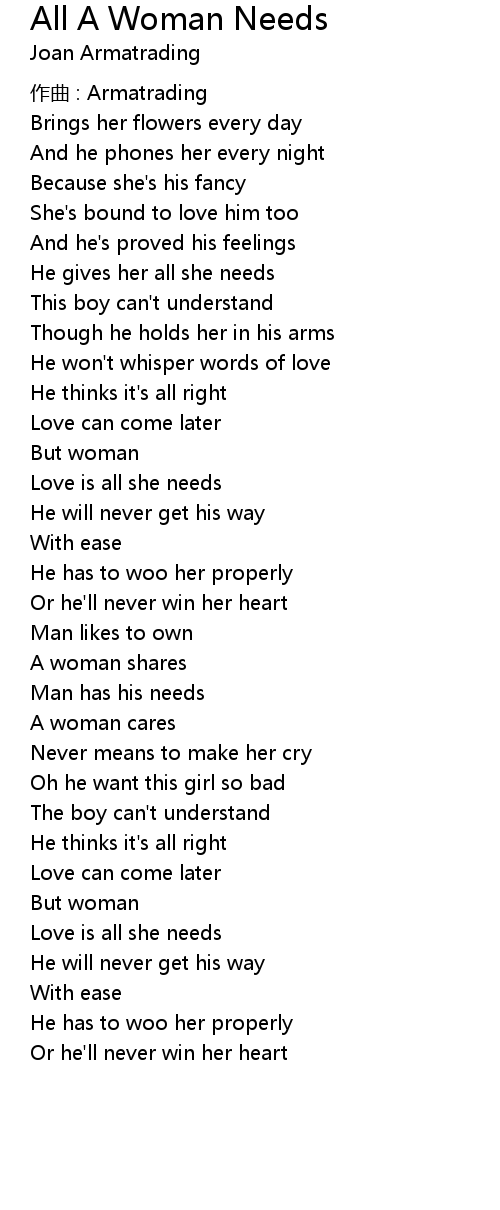 | Song | All A Woman Needs |