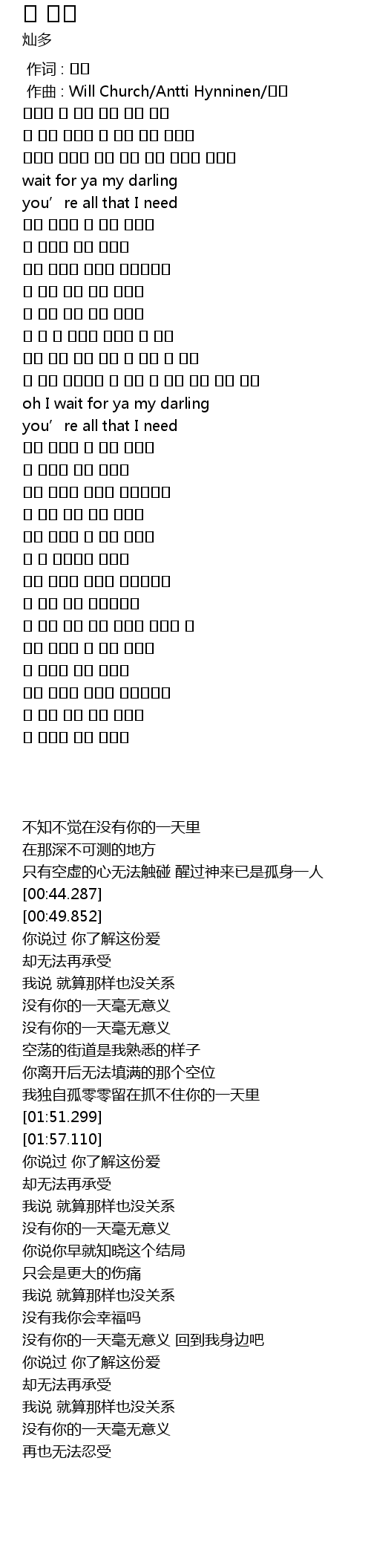 | [02:20.906] | 너 없는 하룬 의미 없다고 |