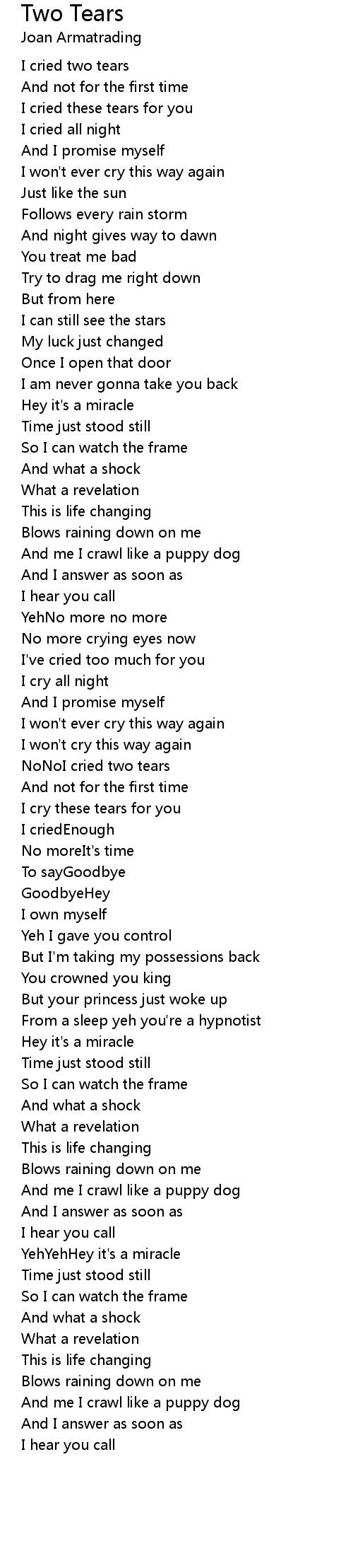 I cried two tears |