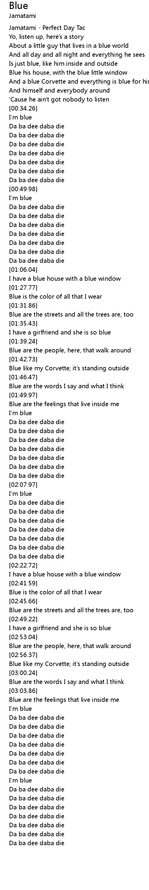 [03:34.77] Da ba dee daba die