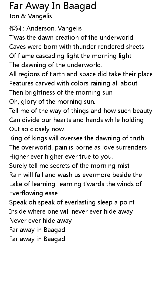 | 作词 : Anderson, Vangelis | |