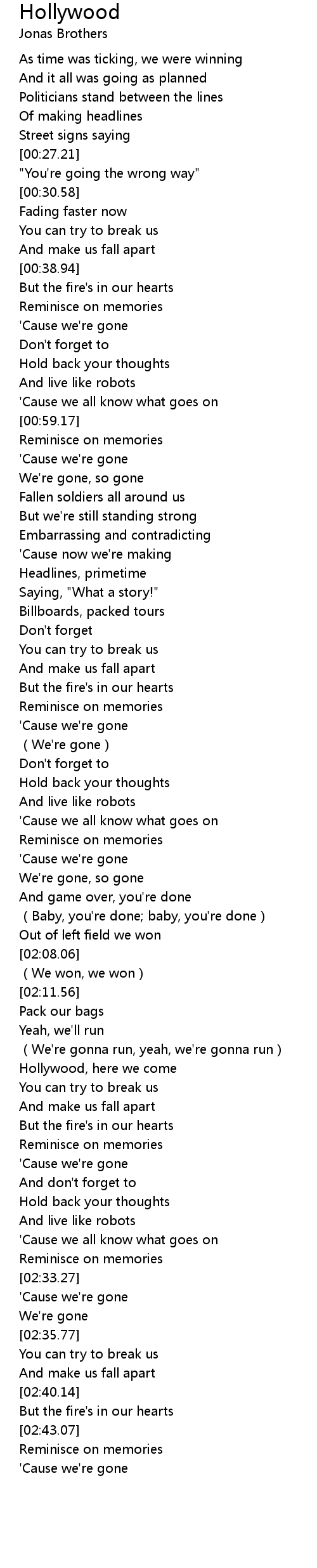 | [00:44.12] | 'Cause we're gone |