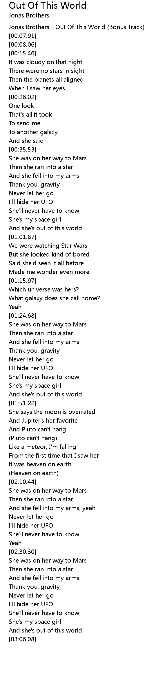 Jonas Brothers - Out Of This World (Bonus Track) |