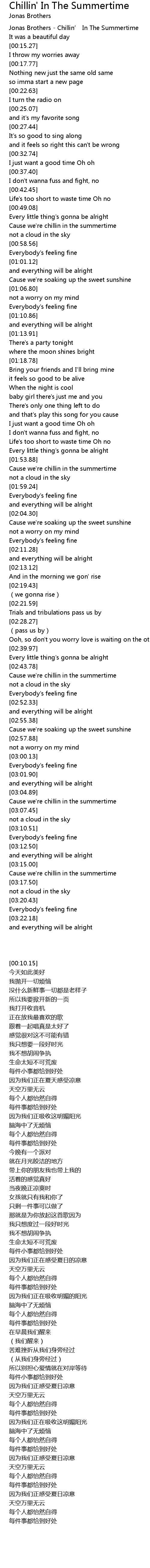| [00:10.15] | Jonas Brothers Chillin' In The Summertime |