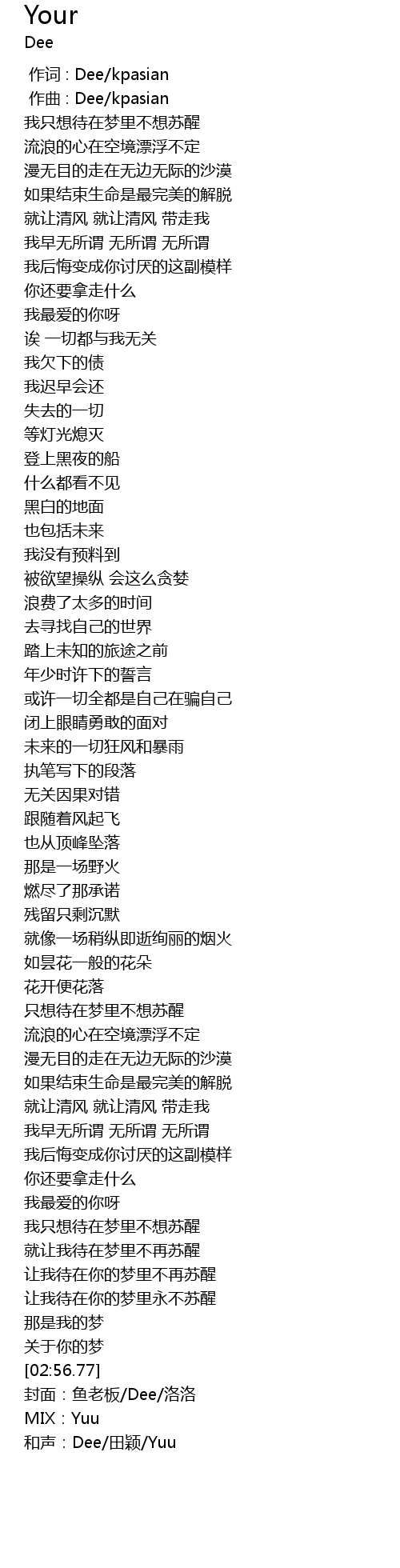 | [00:01.000] | 作曲 : Dee/kpasian |