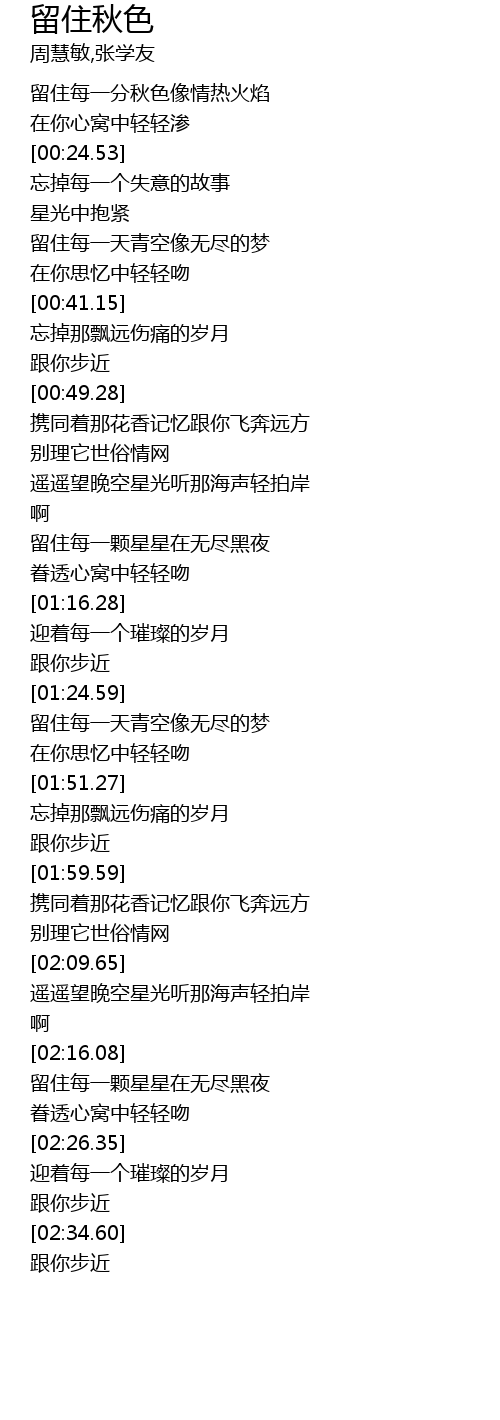 | [00:16.73] | 留住每一分秋色像情热火焰 |
