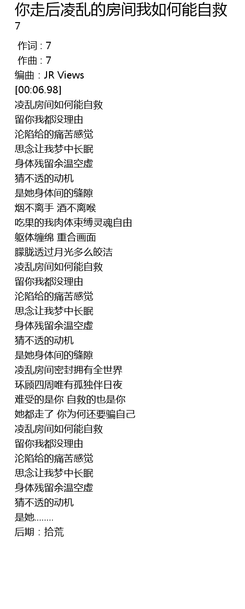 | [00:18.27] | líng luàn fáng jiān rú hé néng zì jiù |