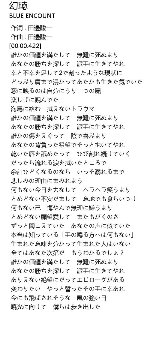 | [00:00.580] | 誰かの価値を満たして 無難に死ぬより |