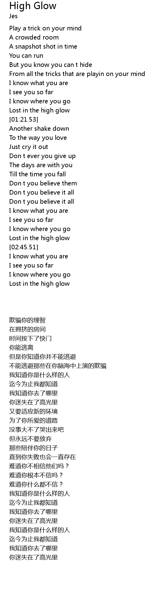 | [02:33.51] | Lost in the high glow |