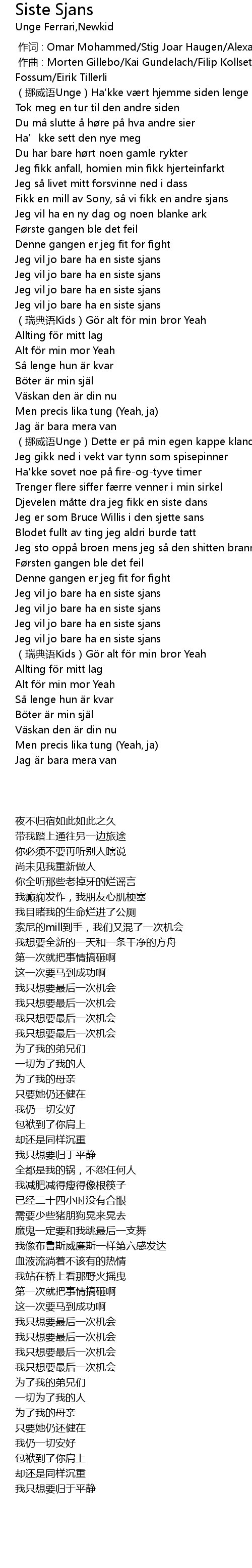| [01:52.905] | nuo wei yu Unge Dette er p min egen kappe klandrer ingen |