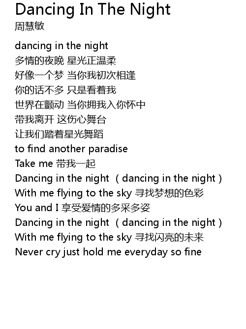 | [01:41.17] | Dancing in the night (dancing in the night) |