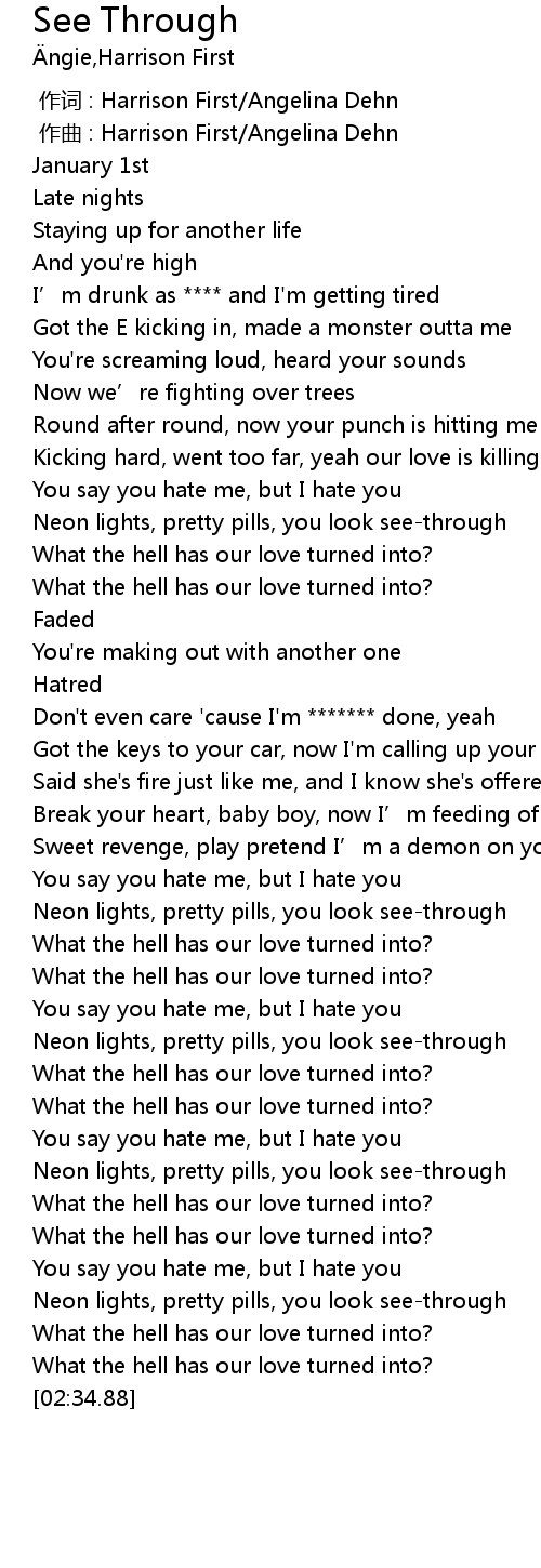 | [02:23.38] | Neon lights, pretty pills, you look see-through |