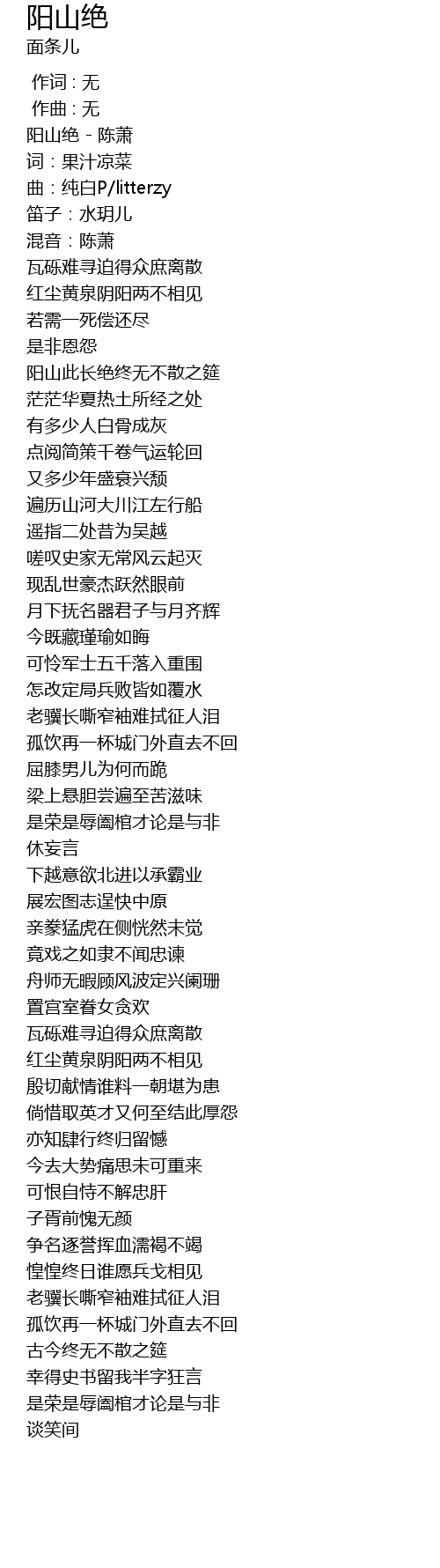 | [00:00.268] | 阳山绝 - 陈萧 |