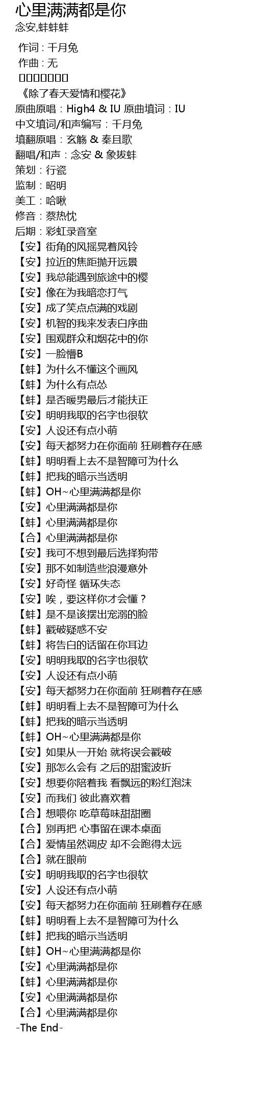 | [01:05.73] | 【蚌】心里满满都是你 |