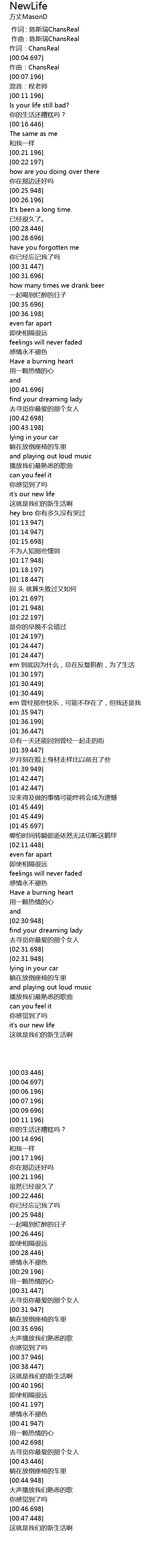 | [00:48.196] | zhe jiu shi wo men de xin sheng huo a |