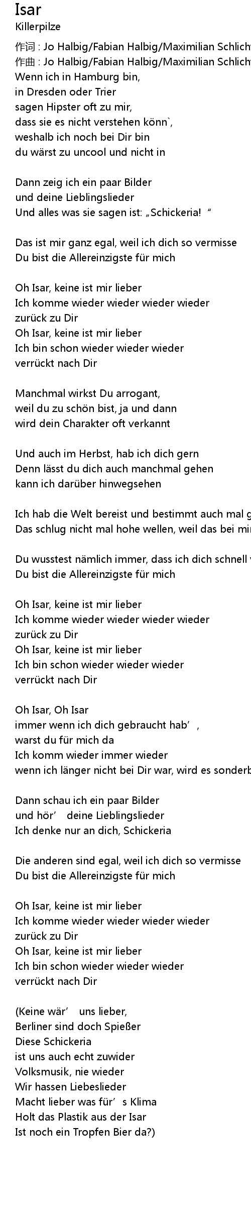| 作词 : Jo Halbig/Fabian Halbig/Maximilian Schlichter | |