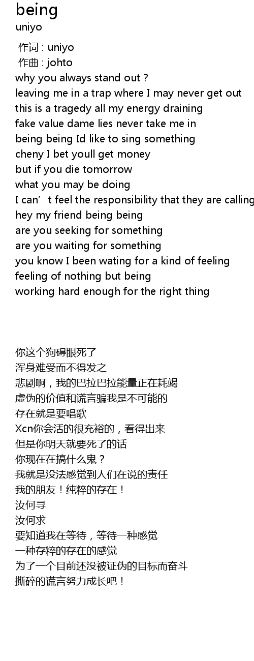 | [00:25.044] | being being Id like to sing something |