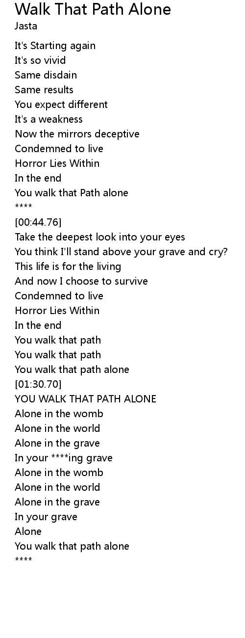 | [01:40.26] | YOU WALK THAT PATH ALONE |