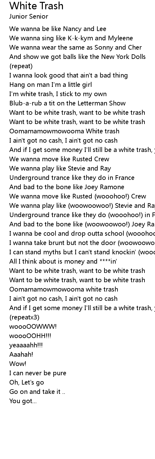 Want to be white trash, want to be white trash |