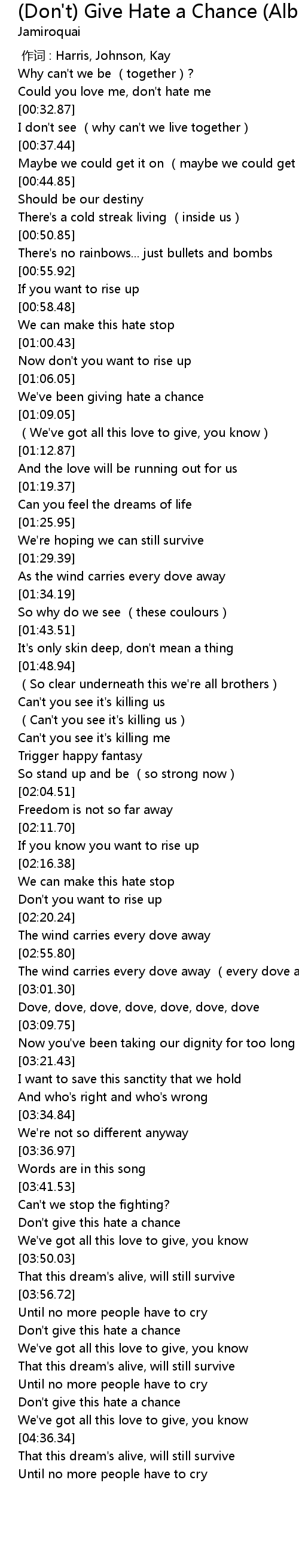 | Song | (Don't) Give Hate a Chance (Album Version) |