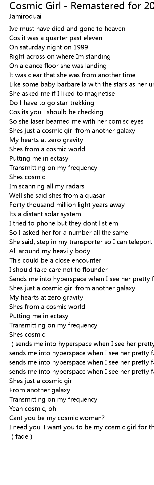 | [00:47.89] | Shes just a cosmic girl from another galaxy |
