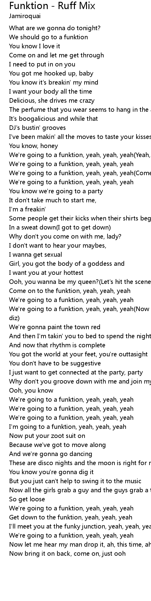 We're going to a funktion, yeah, yeah, yeah(Now come on and drop it for me like diz)
